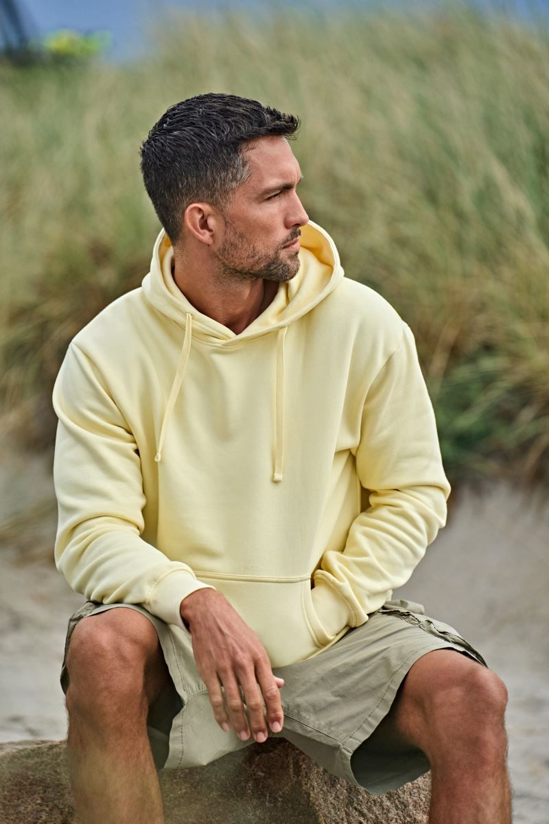 Klasičen kroj, podložena kapuca z ravno vrvico v tonu barve, polmesec na ovratniku, manšete in rob z elastanom, kenguru žep, dvojno barvano, krtačeno v notranjosti, nevtralna etiketa velikosti, pralno pri 60°, mehek na otip, kvaliteten izdelek