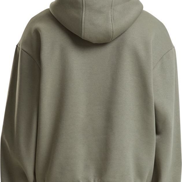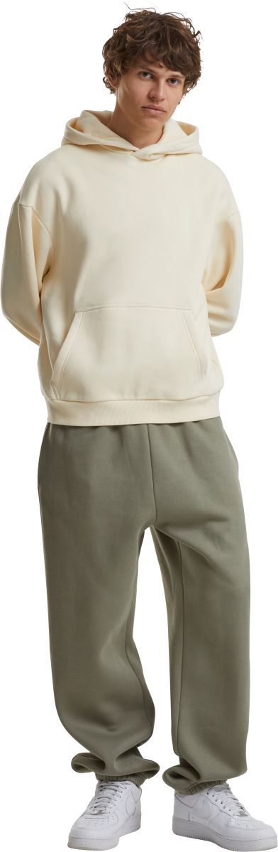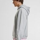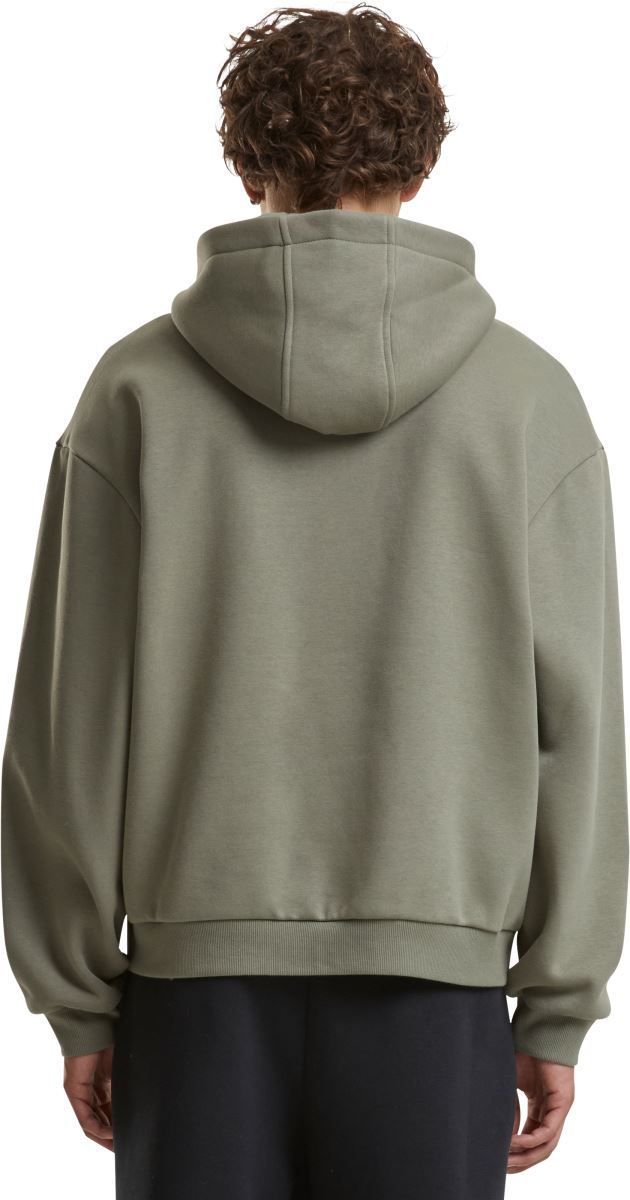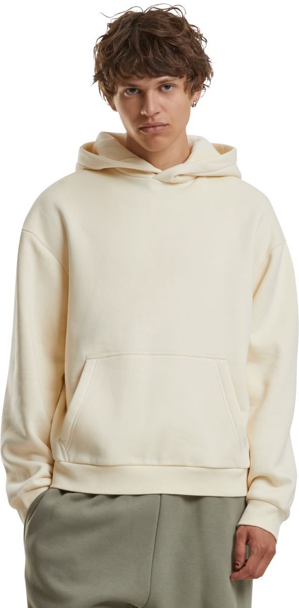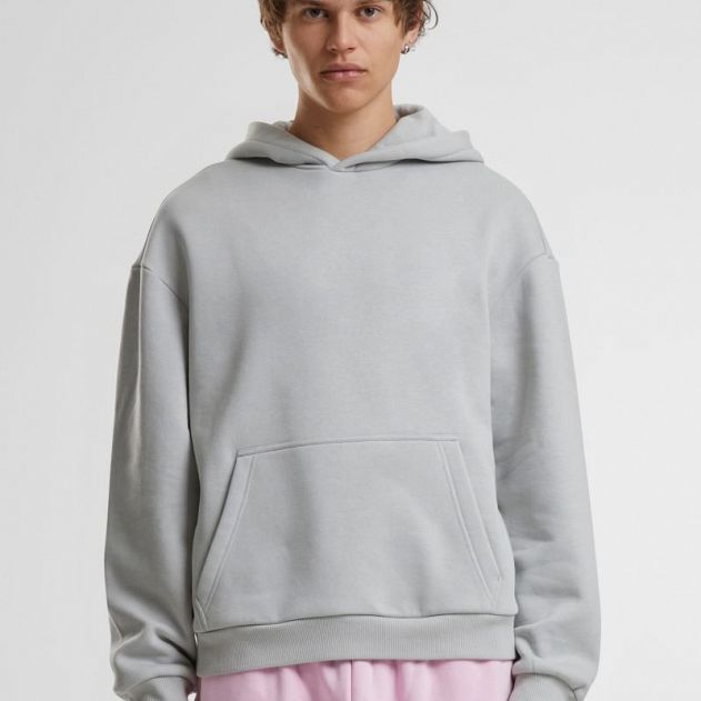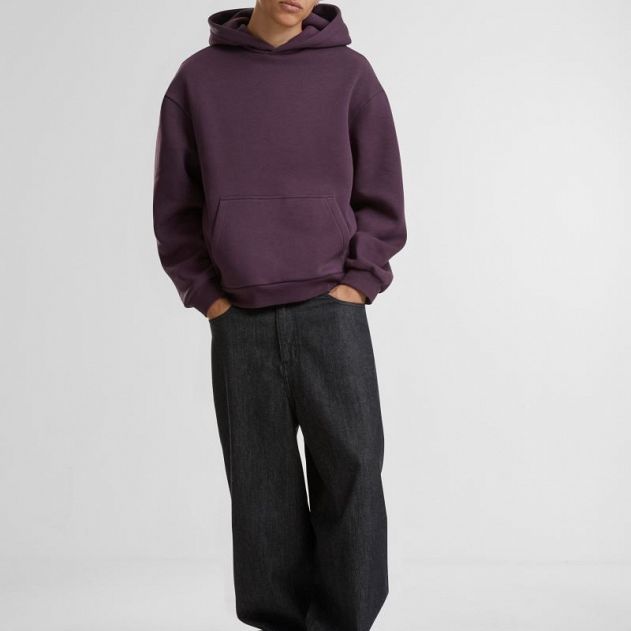 Oversize kroj, podložena kapuca brez vrvice, spuščena ramena, rebrasti manšeti na rokavih in robu,