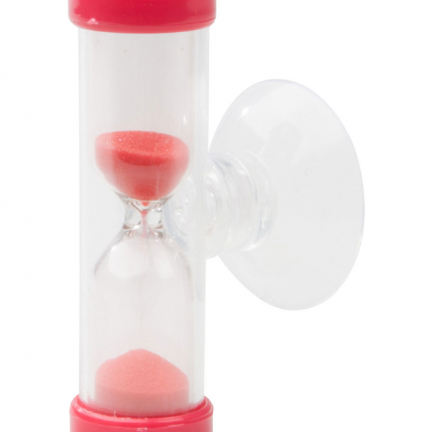 Plastična, 3-minutna peščena ura z barvnim peskom in držalom za prisesek.