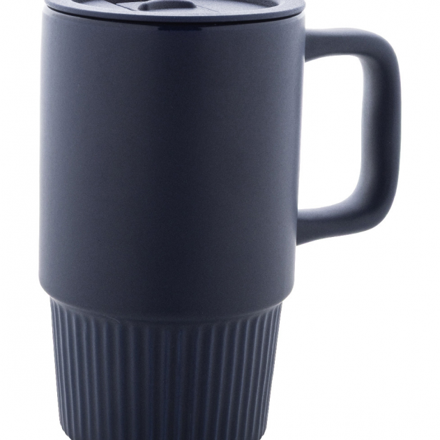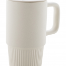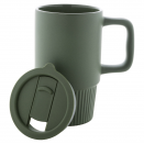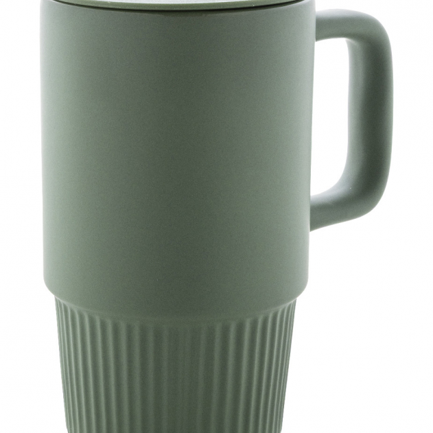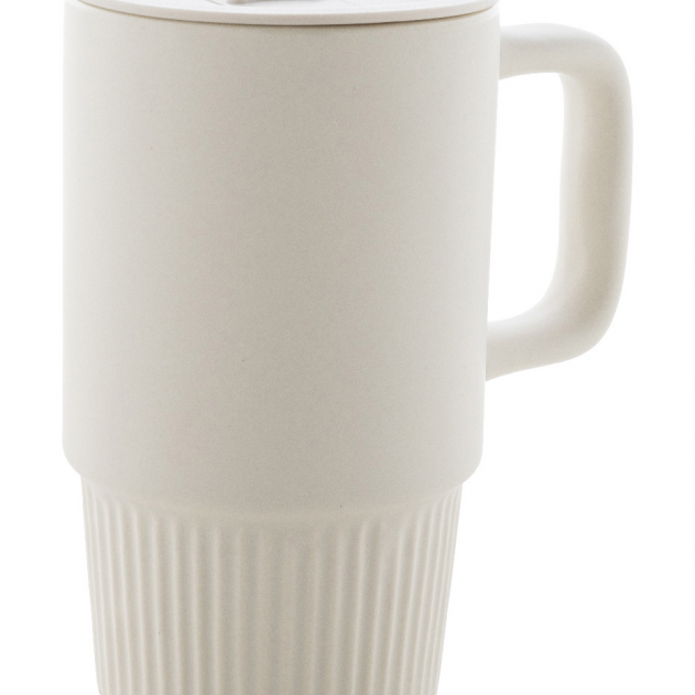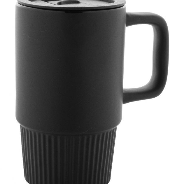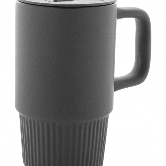 Visokokakovosten keramični potovalni vrček z mat zunanjo površino in pokrovom iz PP plastike. 420 ml.